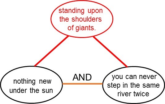 Taken together, I think they make an elegant example of a contradictory pair: one says that everything is new, the other says nothing is. So how can they both be true? And if they are representative of a thesis-antithesis pair, what might the synthesis look like?